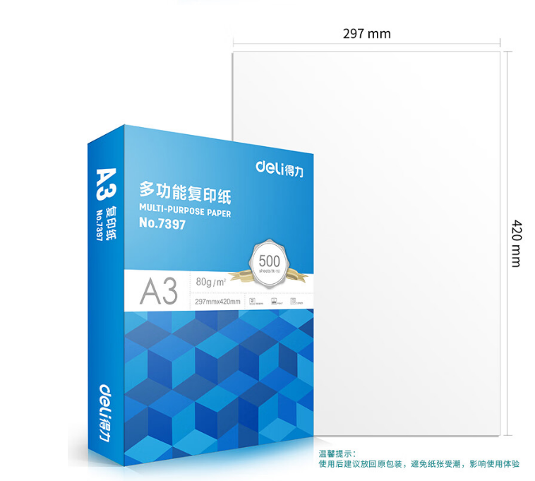 得力/deli 7370 復印紙 A3 80g 雙面打印紙 萊茵河 500張/包
