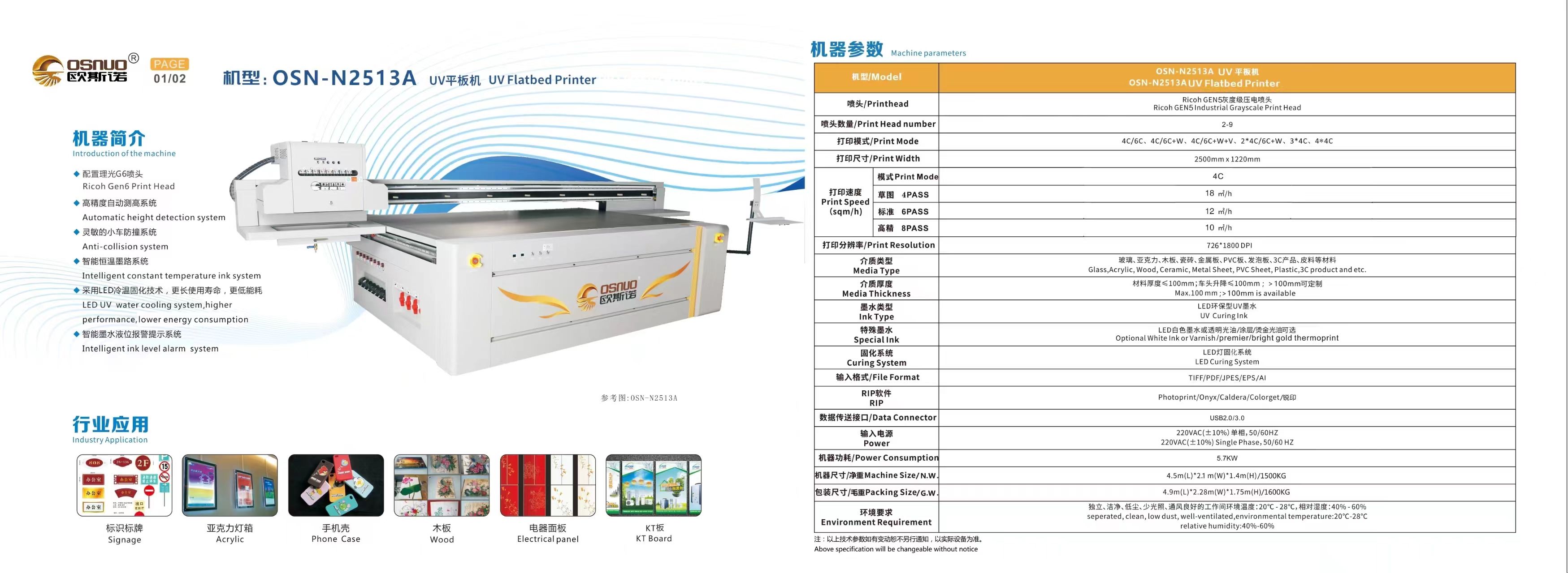 歐斯諾·本色 OSN-N2513A 多功能一體機 平板 UV打印機